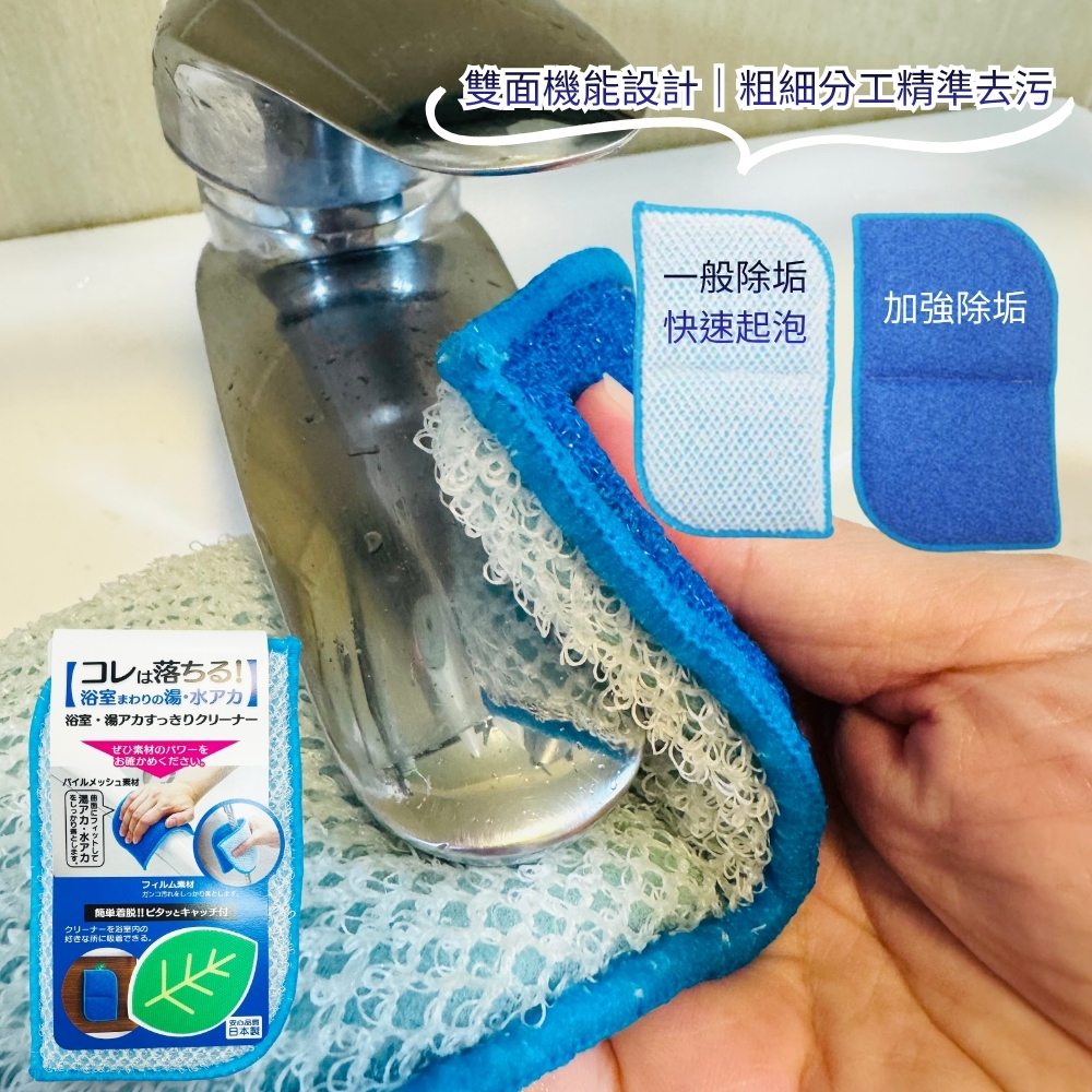 透過不同材質的雙面設計,不僅能有效去除水垢與皂垢,