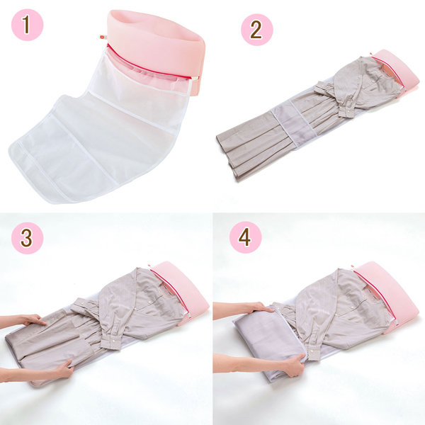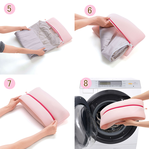這是專為時尚服裝設計的洗衣袋,只需將連身衣(裙)平順的放入專用網袋內(衣物要穿過洗衣袋設計的固定帶),即可防止衣服在洗滌過程中變形和起皺。洗衣袋採用名為Marshmallow Mesh厚度約3mm的3D網狀布料製成,可防止棉絮進入,保護您珍貴的時尚衣物避免洗衣過產生的磨擦及衝擊。