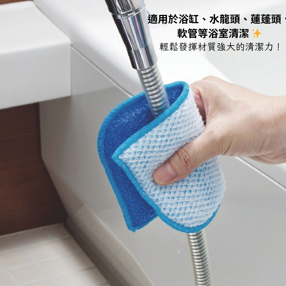 • 絨毛網布面(針對皂垢):柔軟織紋能產生細緻綿密的泡沫,快速帶走浴缸邊緣殘留的沐浴乳與皮脂皂垢。